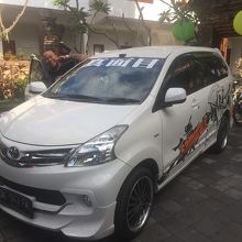 待ち合わせ20分前にホテルロビーに行くと、すでに待機!真面目って大きなステッカー貼ってあるので、かなり目立ちます。