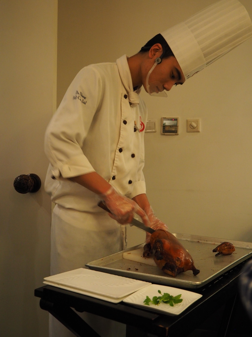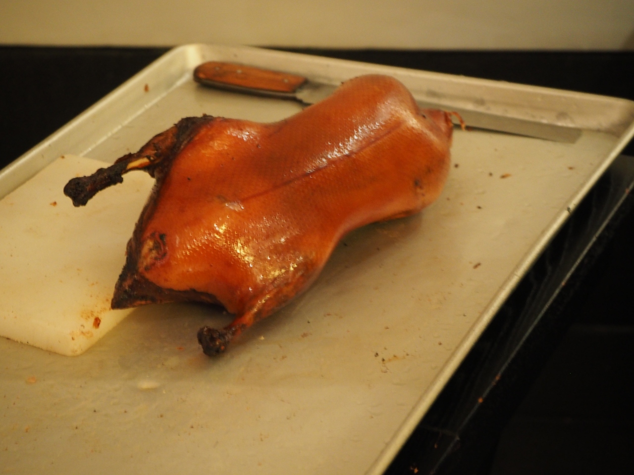 北京ダックは、目の前で切り分けてもらえます。