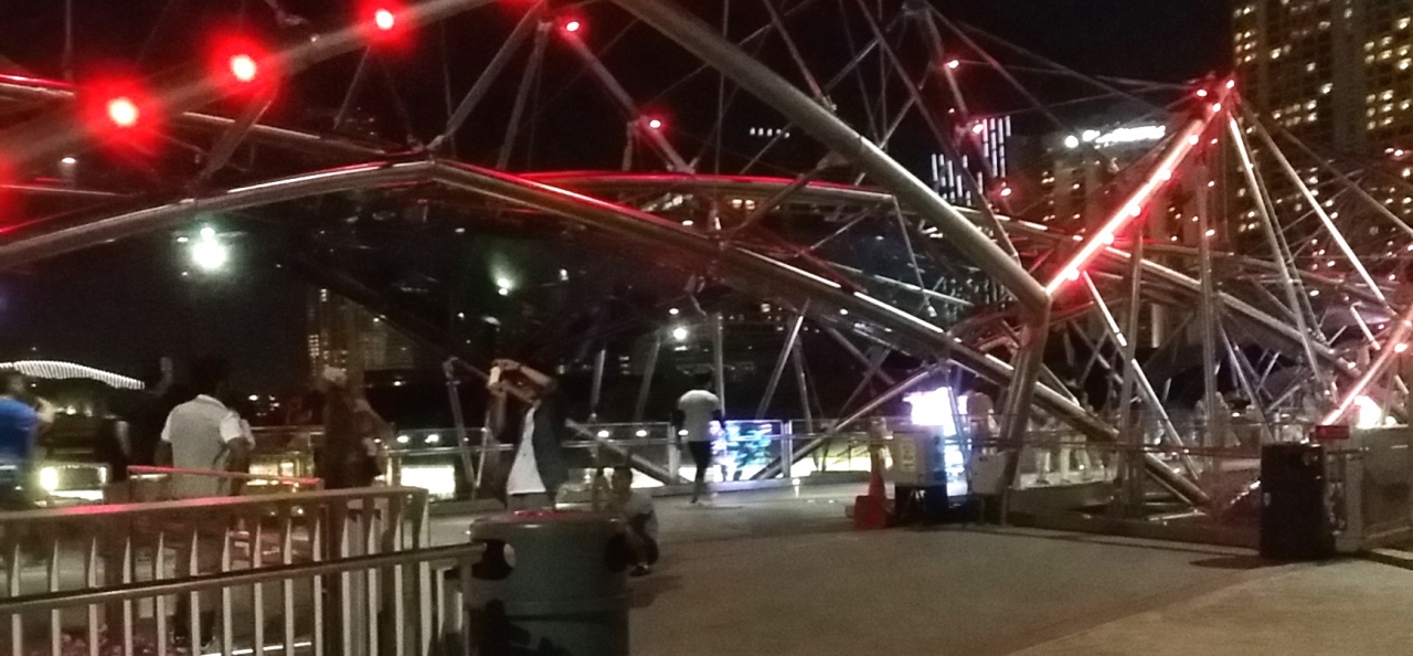 橋を渡るツアーがあるのか、ピカピカカラフルに光るセグウェイや自転車などで楽しそうに橋を渡る観光客の人が多くいました。