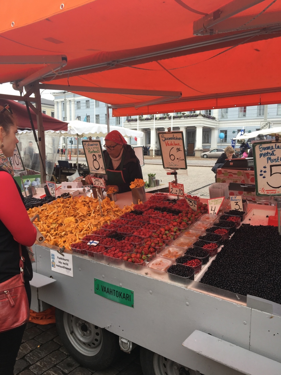 スオメンリンナ行きのフェリー乗り場目の前にある市場です。屋内市場は日曜はお休みですが、屋外は日曜日もやっていました。フルーツ、お土産ものがメインで、たまたま私が行った時は温かい食べ物はスープくらいでした。