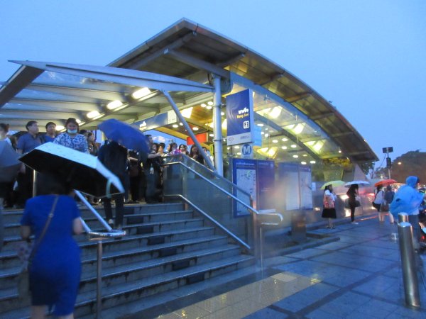 2017年7月7日(雨天)、未だMRTパープルラインのタオプーン駅とブルーラインが繋がっていない頃、タオプーンからのシャトルバスを降りてからバーンスーン駅の入口に入ろうとしたところ、雨宿りしている人たちでごった返してなかなか入れずびしょ濡れになりました。やっと入れたホームまでの通路の両側地べたにも座り込む人たちばかり。国鉄の乗換も便利なので、パープルラインと繋がって乗降客が増えたときのハード面が心配です。
