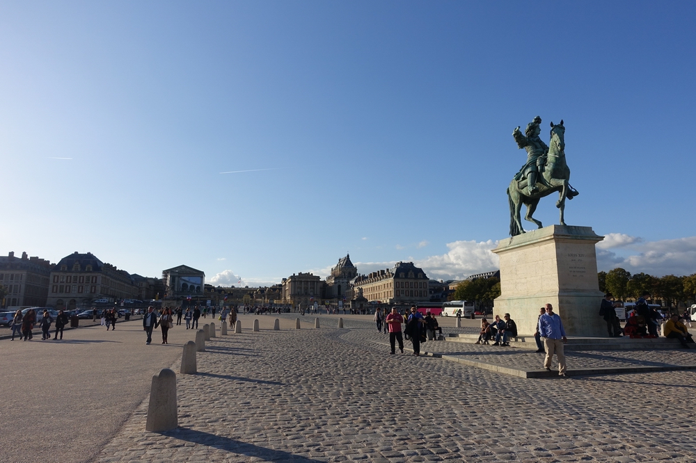 宮殿の門の前に広がるのがアルム広場。行きと帰りに自動的に通ることになります。広場にはルイ14世の騎馬像があるほかは、両サイドは駐車場として使われているようでした。広いので見晴らしはとても良いです。