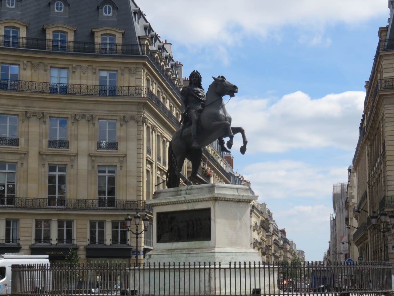 パリ1区と2区にまたがっていて、パレ・ロワイヤルの近くで、ルイ14世の騎馬像が広場の中央にあり、6本の道路が交差していました。ルイ14世の騎馬像は、フランス革命中の1792年に壊されてその後、1828年に現在のルイ14世の騎馬像が再度置かれたようです。戦勝記念に広場が造られたので、広場の名もそのまま名付けられたと思いました。