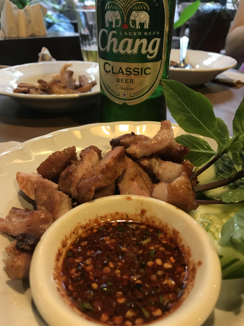 チェンマイの市街地からは3キロほど離れていたため自転車をレンタルしていきましたが、どの料理もおいしい!コムヤーンも美味しかったですが、タマリンドの葉のサラダ、鳥の手羽先も美味しかったです!雰囲気もよく、地元の美味しいものが好きな人たちが食べに来ている様子でした!