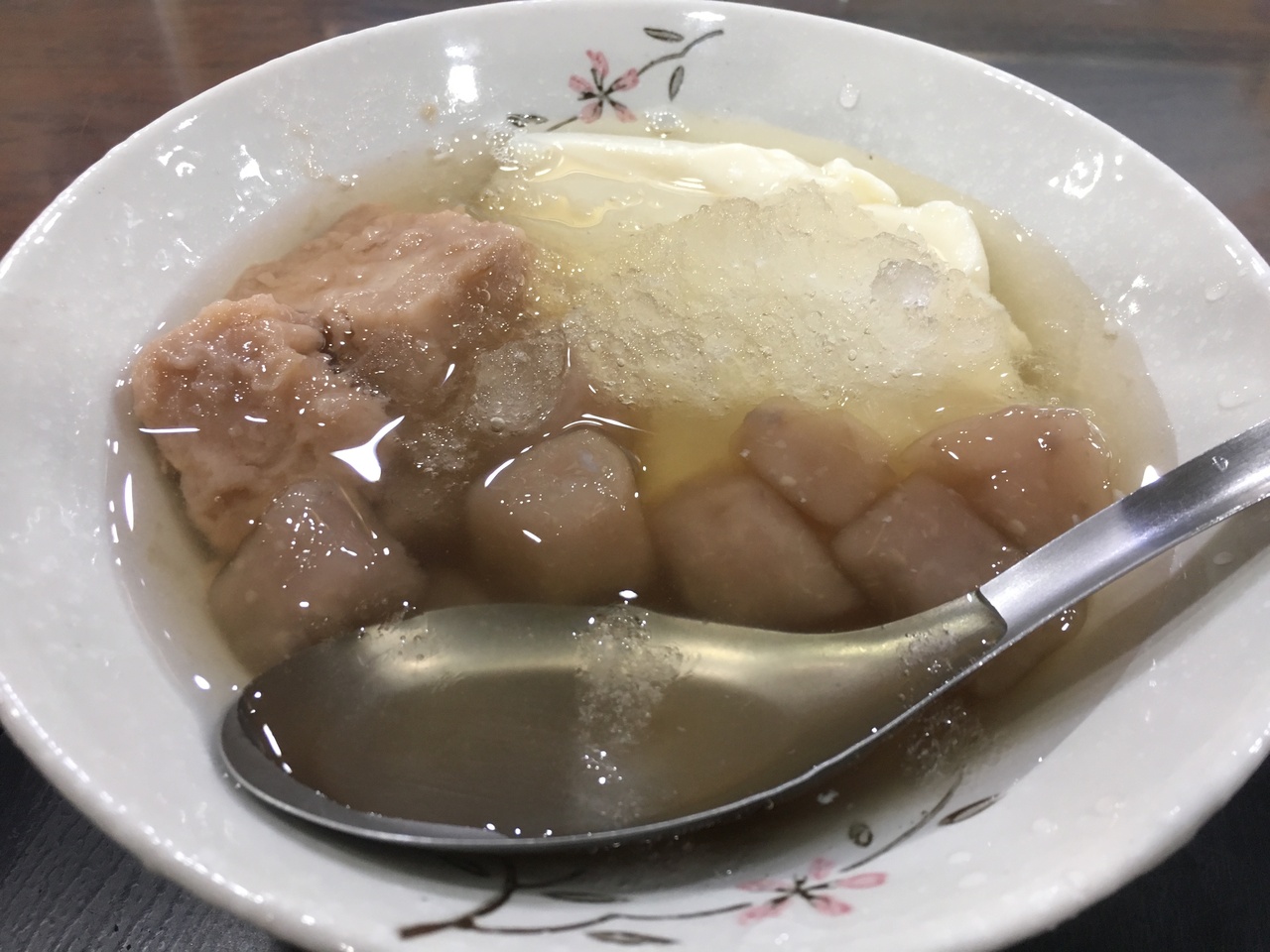 寧夏路夜市の一番端っこに位置しています。タロイモとタロイモ団子の豆花をいただきました。
