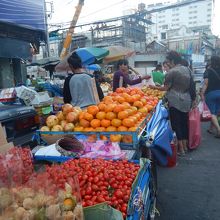 ヤワラート通りとともにチャイナタウンを代表する通りの一つチャルーンクルン通りは地下鉄工事の真っ最中。渋滞はひどいし、落ち着いて歩くこともできない。これでは商売のする方も大変だろうし、早く完成してほしいものだ。通り沿い店を出している果物の屋台や中国寺院を見て歩いた。