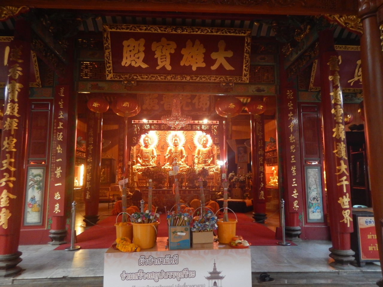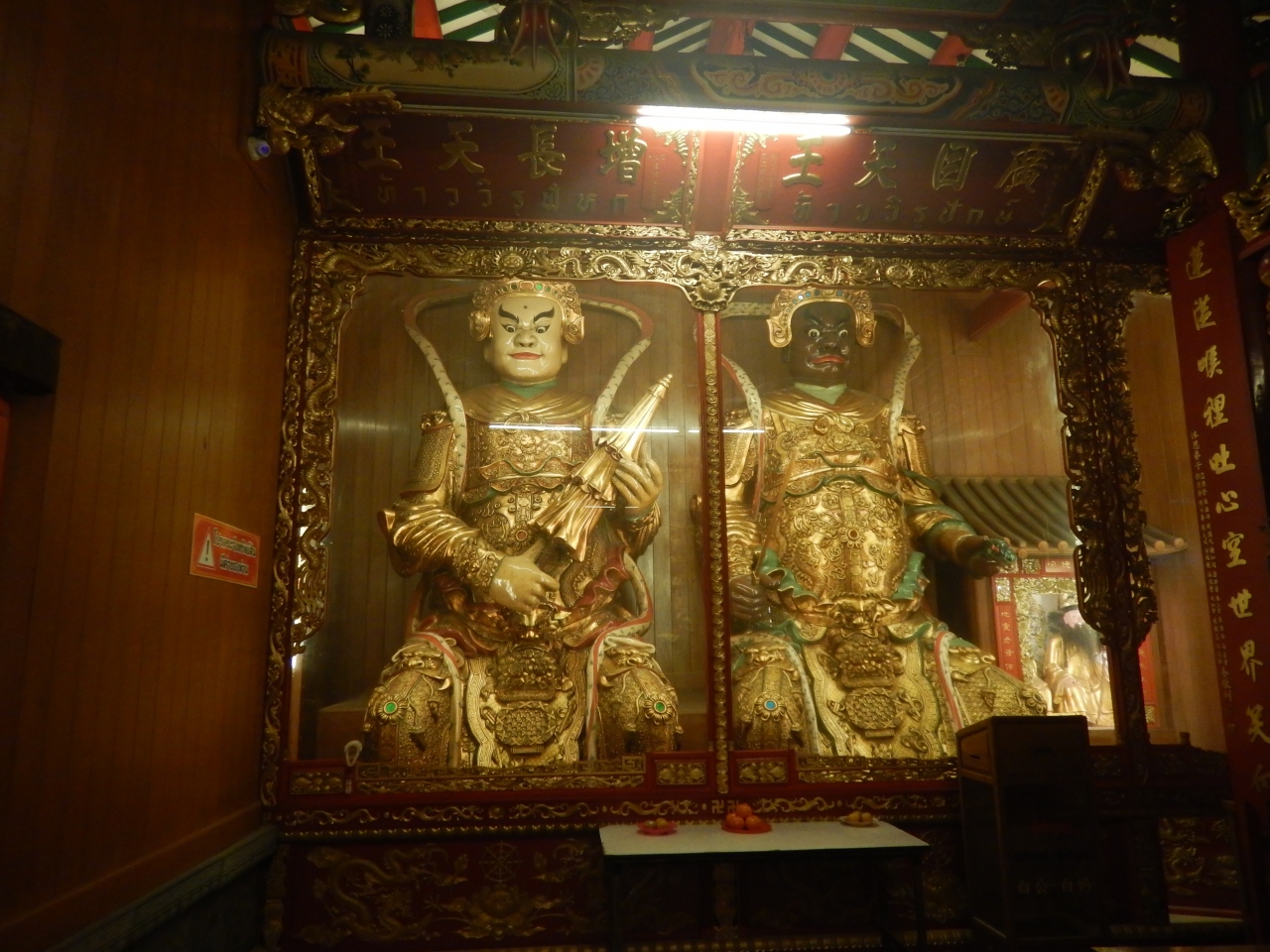 中に入ってみると両側に四天王像が2体づつ並んでおり、正面には仏像が3体な並んでいる。タイの文字よりも漢字で書かれているので意味が概ねわかるので安心した。