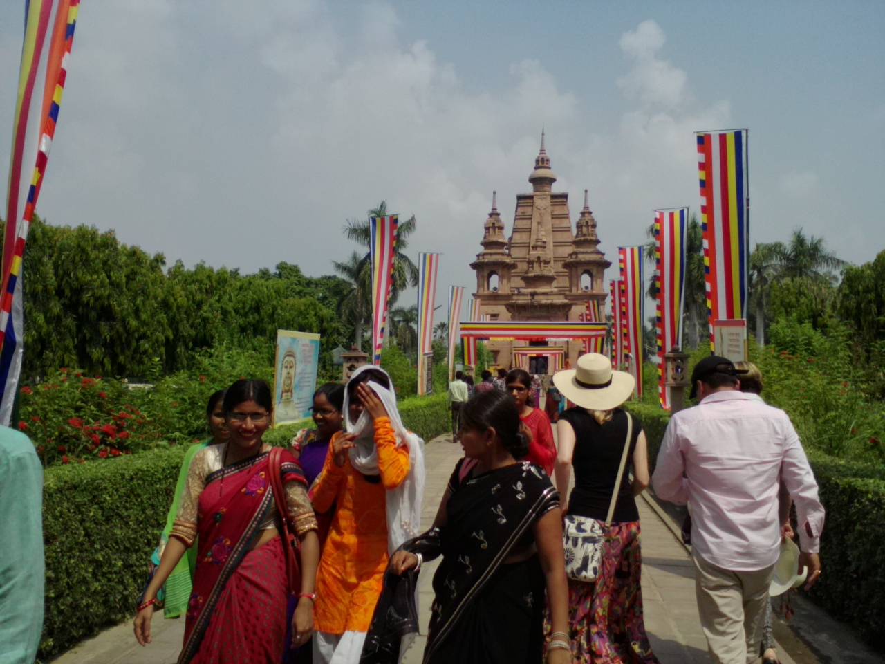 サルナートにある仏教寺院。外観はとても仏教寺院にはみえません。見どころは戦前に日本人画家が描いた壁画。お堂の中の壁にブッダの生涯が描かれています。ちょうど団体の信者の方々が読経中で中に入ってじっくり眺められませんでした。しばらくして再び訪れるとランチタイムで閉まっており中には入れませんでした。