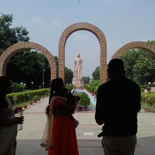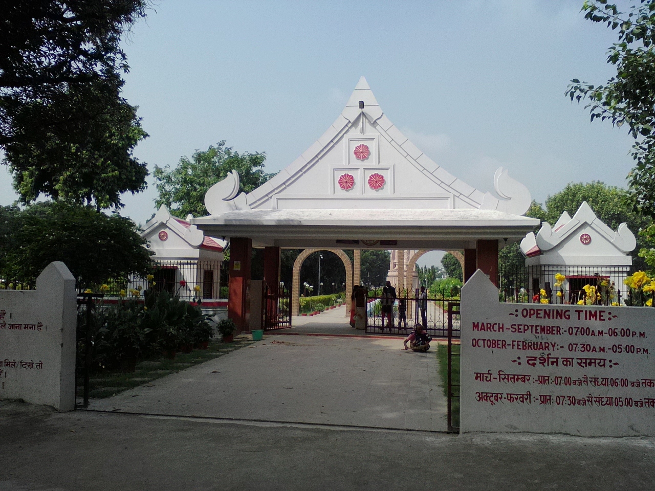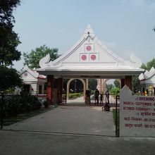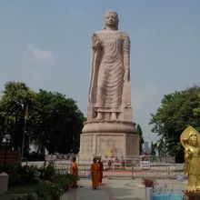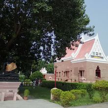 サルナートにあるタイ寺院。見どころは水路の先に建つ高さ約25mの大きな仏像。高さは約25m、2011年3月に12年かかり建てられました。仏像のたもとでオレンジ色の袈裟を着た少年僧達に遭遇。タイ語で挨拶してみましたが通じませんでした。おそらくお経はタイ語であげると思いますが日常会話は勉強していないのかもしれません。敷地内には“本場”とは少し違う本堂もあります。入場無料。