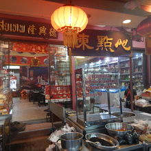 中華料理の食材や野菜、魚などの生鮮食品だけでなく、シイタケ、お茶、銀杏、ザーサイなど乾物、漬物、香辛料(源順)が売られている。狭い道を往復しても見飽きない。点心(陳点心)や麺(香港ヌードル)の店が商店の間に点在している。