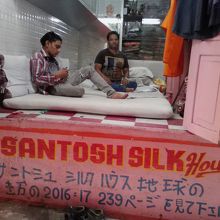 “歩き方”で紹介されているお店。看板には掲載ページ数まで書きアピールしています。シルクやカシミアのスカーフやストールを扱う店としては標準的で品数はそれほど多くはありません。コットンのアリババパンツは既製品があり150Rs〜。シルクの場合はオーダーメイドのみで1500Rs〜。日本語堪能な息子さんがいますが言葉遣いが砕けていて少し不快に感じました。それと○○の店は偽物を売っているとかガイドに連れられて来た場合はコミッションを払うのであまり安くできないとか業界の裏事情的なこともぺらぺら。“軽い”というか信用度にやや欠ける印象。また息子さんがいない時はお父さんが相手をしてくれたのですが英語があまり話せないので意思疎通もままならず…。ちょっと面倒くさい店のような気がします。