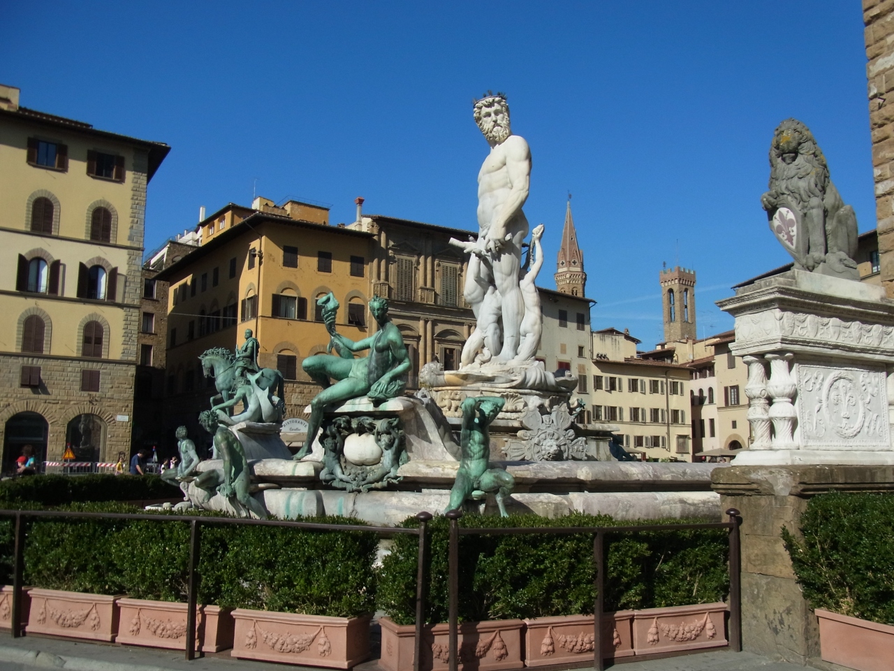 ヴェッキオ宮の前にあ広場で、ヴェッキオ橋、ウッフィツィ美術館からも近いです。