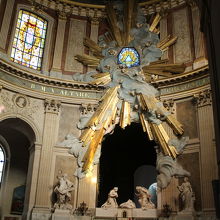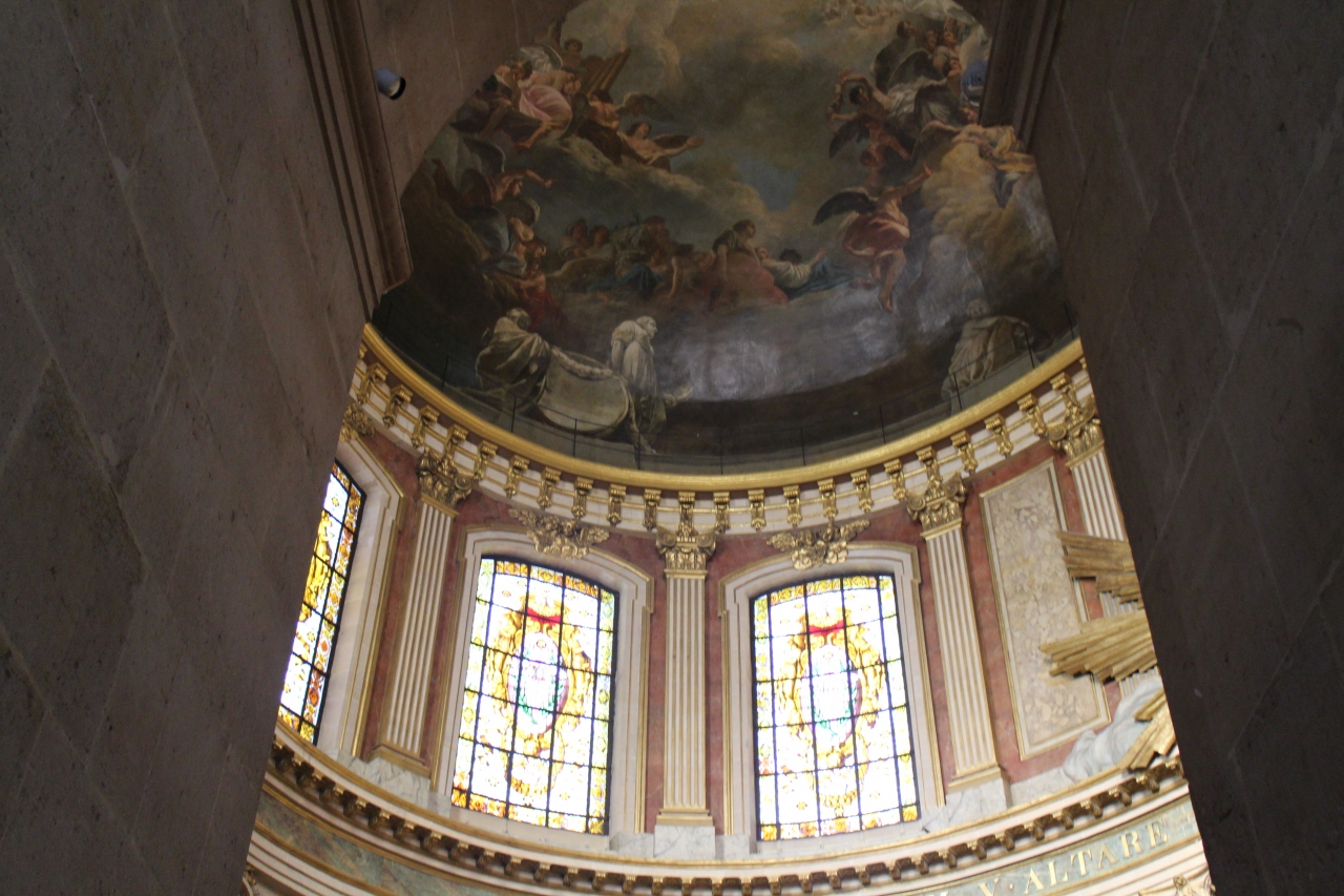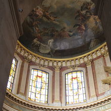 教会内部は立派な礼拝堂があり 内陣の華やかなクーポールは、ロジェの聖人と天使が描かれた美しい天井画 静かな中豊かな気持ちで過ごせました