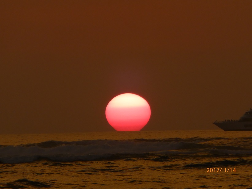 食事をして&夕日を見て&ハワイアン・ミュージックを聞きながらフラダンス・ショーを見て、約4時間、のんびり・楽しいひと時を過ごすことが出来ました。
