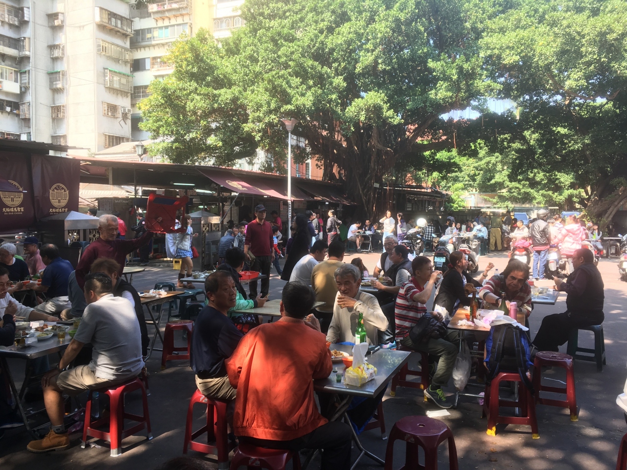 台北市内、迪化街と寧夏路の間という好立地の由緒正しいお寺ですが、もちろん参拝者も絶えないものの、実際には門前にひしめく台湾屈指のグルメ屋台群が地元の人を惹き付けてやまないグルメスポットでもあります。朝早くから境内のガジュマル的な巨木の下に陣取り、台湾ビール片手にルーローファンやシラスたっぷりの炒飯など、門前の店々が誇る看板メニューを頬張る人人人。観光客は少な目ですがもちろんウェルカム歓迎光臨です。