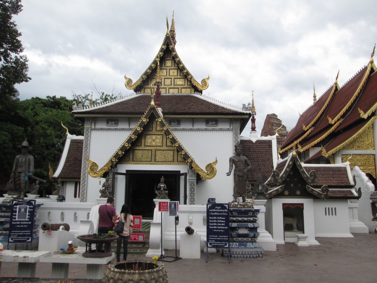 ワット チェーディ ルアン本堂横の一画にラックムアンがありました。ここは、入口に案内がありましたが、女人禁制でした。折角の機会なので中に入ると、狭いですが中央に黄金のブッダ像があり、その周囲には天上界をイメージしたような絵で四方を囲んでました。