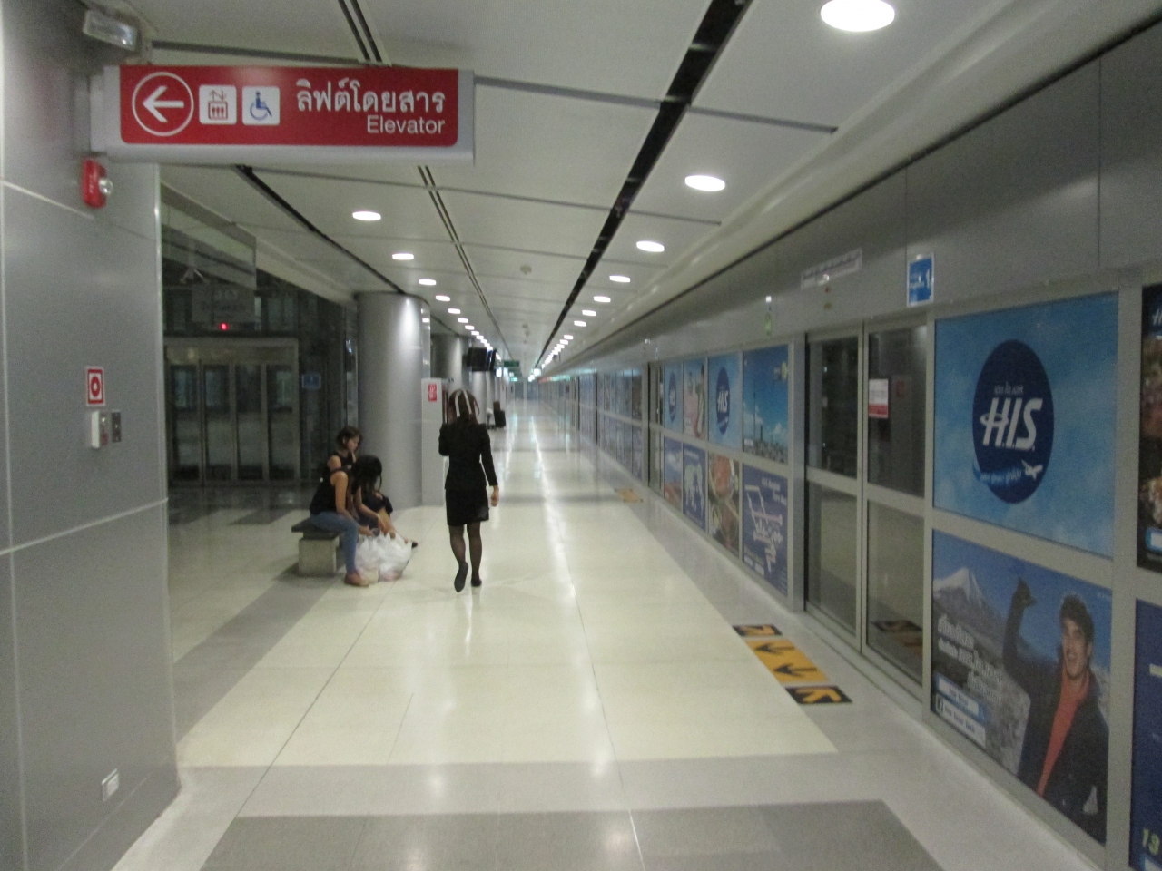 島式1面2線ホームで、エアポートレールリンクが発着するのはパヤタイ駅方面に向かって右側である1番線ホームのみで、反対側のホームは使われていません。駅に到着すると、人あし先に電車が出発してしまい10分程度駅で待つことになりました。
