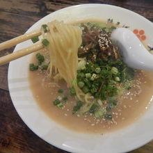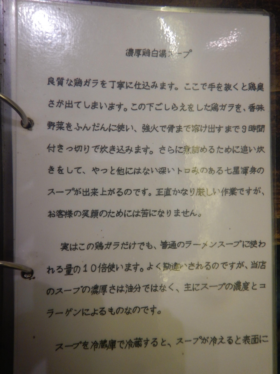 鶏白湯スープが名物。具がほとんど入っていないラーメンなら80バーツから食べられる。普通のスープの10倍の鶏ガラを使っているそうなので、確かにスープは濃厚だ。濃厚さは油ではなくコラーゲンのよるものだそうだ。