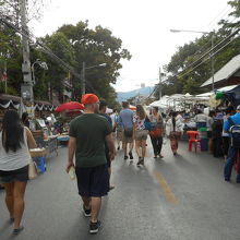 チェンマイは、毎晩ナイトマーケットが開かれますが、土日は場所を変えて開催されます。日曜日のサンデーマーケットは、旧市街内のラーチャダムヌン通りで夕方5時頃から開かれます。昼過ぎ頃から車を停めて露店の準備が始まります。夕方の4時過ぎにはすでにかなりの人が買い物に訪れていて、店の準備が出来た所から営業開始という感じでした。6時を過ぎるころには身動きできないくらい人混みが出るので、人混みが苦手な人は、早めに訪れて買いたいものを買って帰るというのが良いと思います。なお、各店では値段交渉(値切り)は必須です。