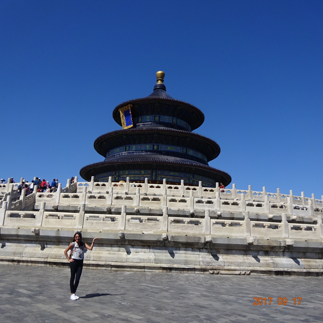 空が青い日だったので、天壇の瑠璃色が青空に映えて美しかったです。