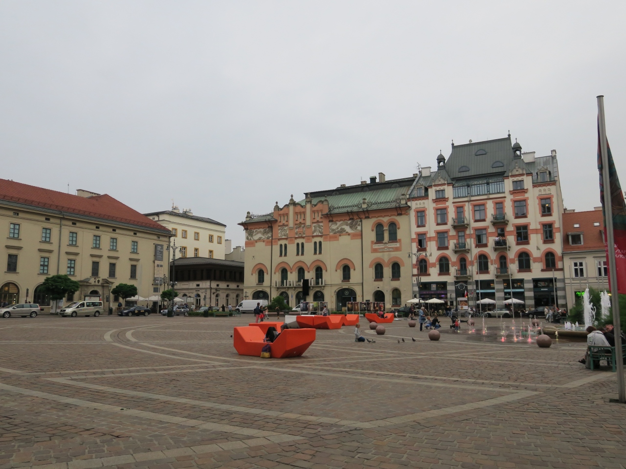 旧市街の北西部分、中央広場から北西に歩いたところにある広場です。近くで食事をしたので、たまたま通ったのですが、広場を囲む建物の美しさにゆっくりしてしまいました。広場の中央には噴水もあって、暗くなるとライトアップされるようでした。中央広場ほど人も多くなく、ゆっくりできる場所でした。