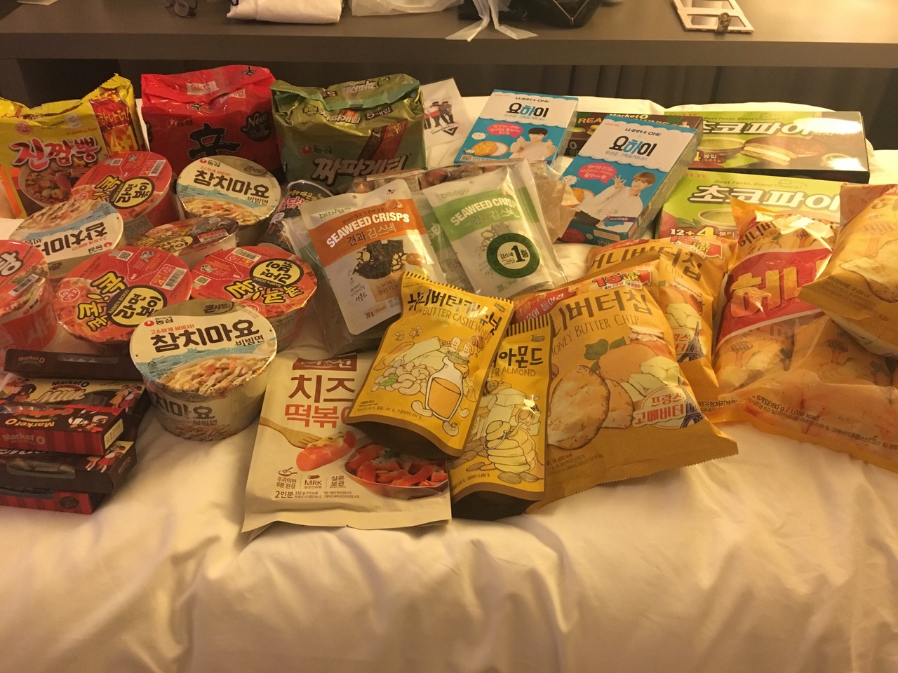 場所はソウル駅地上に出てすぐ。イオンスーパーのような雰囲気で、日用品から食品まで品揃え豊富です。お菓子も土産店より格段に安く、色んな種類が選べるので私は毎回ここで買ってます。バラマキ用、個人用どちら用にもおすすめです。