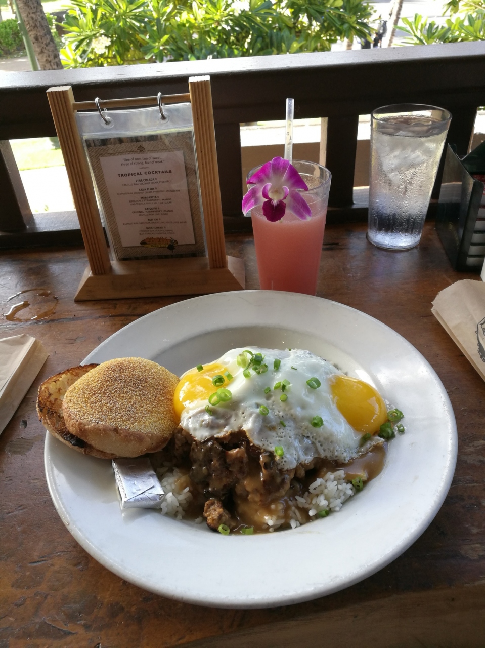 ワイキキビーチからクヒオビーチを散歩しながら朝御飯を探していました。看板にはワイキキで極上のロコモコと言う文字が⁉️半信半疑ですが2階の窓際が空いてれば最高の景色が見れるんじゃないかと。運良くビーチが一か望できる席に、ジャパニーズと聞かれて、日本語メニューがあってオーダーもスムーズに。自慢のロコモコとパンケーキを頂きました。お味も良く価格もリーズナブルで素敵な朝の時間を過ごしました。