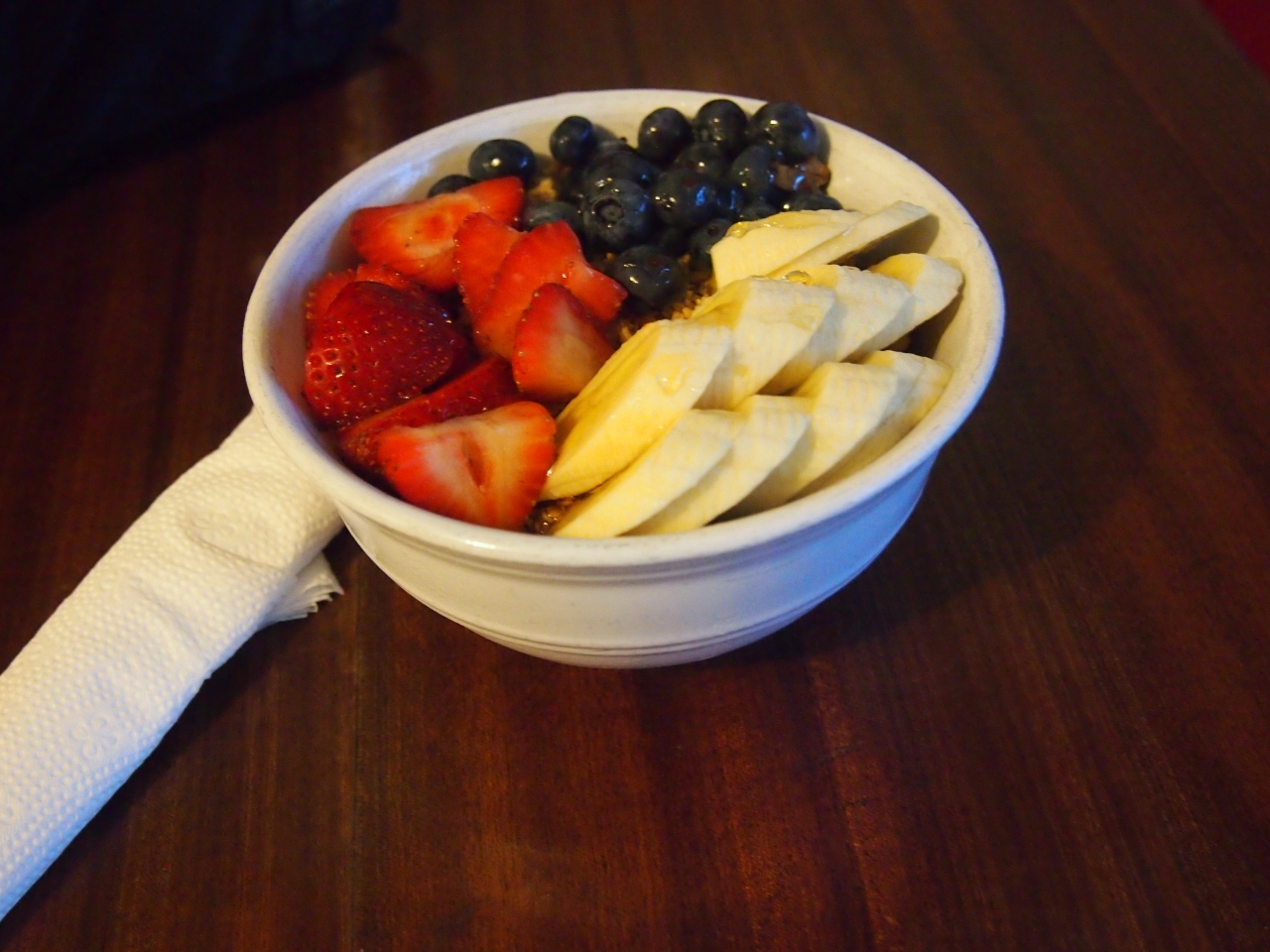 小さなお店で、ほかのメニューはよく見ていません。「アサイーボウル」はそこそこ大きなボウルに入って出てきましたが、アサイー以外のフルーツも載っていて飽きません。ペロッと行けますよ。