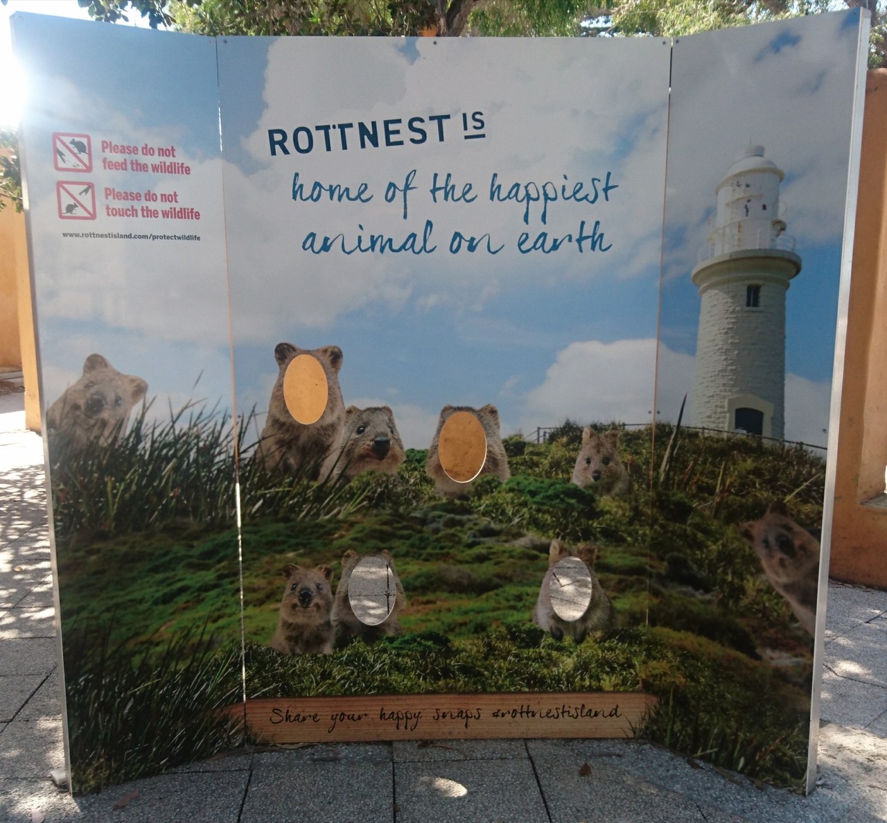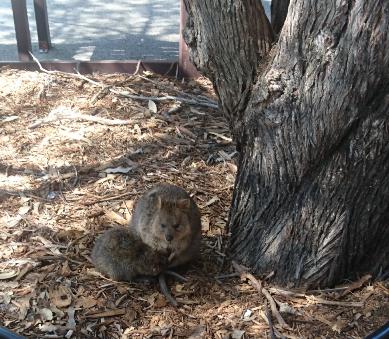 お土産屋さんやレストランストリートにはクオッカが何匹も!おさわりと餌やりは厳禁。