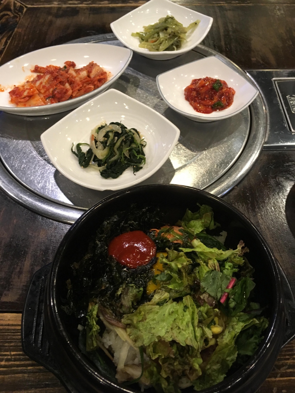 マッサージのお店から無料券をいただいたので、夜ごはんに伺いました。3種類の中からビビンバを注文しました。料理はそんなに待つことはなく味は普通です。店内には韓国のお客さんもいたので、地元の味なのかなと思います。