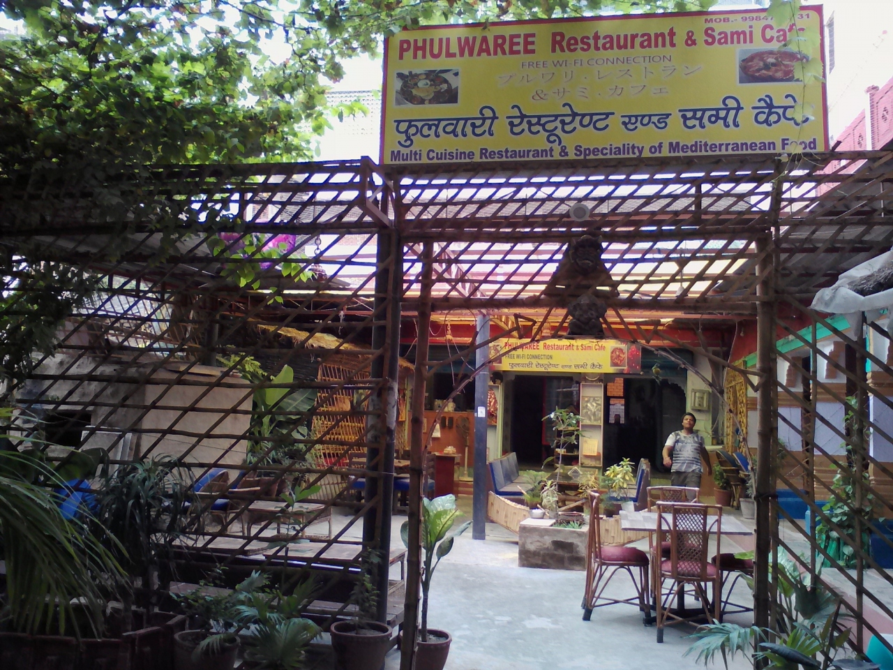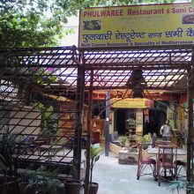 ゴードウリアー交差点から北ヘ50mほどのところに入口があります。ガイドブックでも紹介されているためかしっかりと日本語の「プルワリ・レストラン」の看板も出ています。入口の門がごっついのはヒンドゥー寺院の敷地を利用しているから。実際に店の横には寺院が建っています。