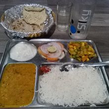 店内は田舎のレストランと言った風情で垢抜け感がはんぱありません。レストランなのか?食堂なのか?メニューはピザやパスタもありますがインド料理中心といった感じ。ここは無難にThali(110Rs)を食べることにしました。まずは有料のペットボトルではなく無料の冷たい水が…。この辺りからして好感が持てます。ターリーはなかなかのボリューム。ダル、ミックスベジ、ライス、チャパティ2枚、カード、サラダ、アチャールのフルセット。お味は…ミックスベジがちょっと薄味で塩をもらいましたが他はまずまずでおいしくいただけました。お会計は110Rsポッキリ。なんとTAXはありません。やっぱりここはレストランではなく食堂のようです。あまり流行ってなさそうで私の食事中、他の客は誰も来ませんでした。Free Wifiが使えます。