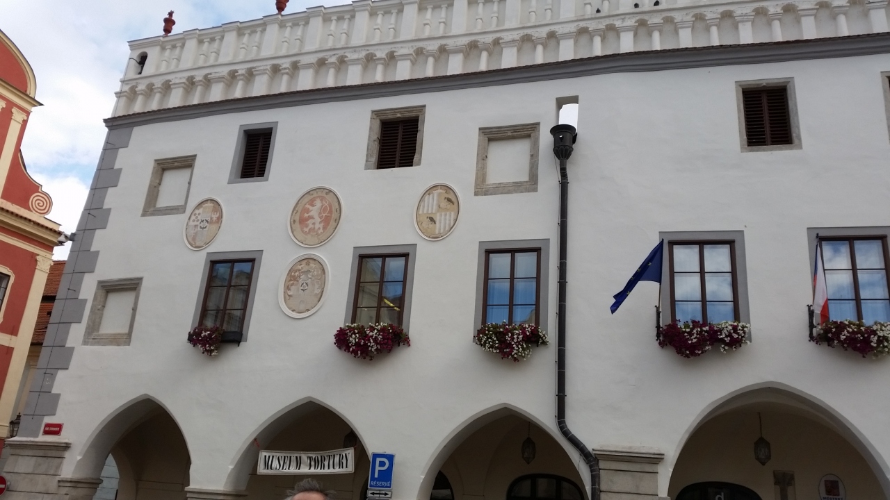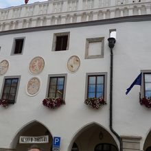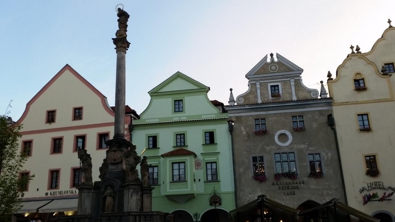 ツアーで前を通りました。駐車場からお城を通り徒歩30分。街の中心にある広場です。市庁舎あり、ペスト終焉の記念塔あり、裏側にはボタニクスなどのお店あり。他国で言うとマルクト広場、アイスをなめながらぶらぶらしている方たちもいました。