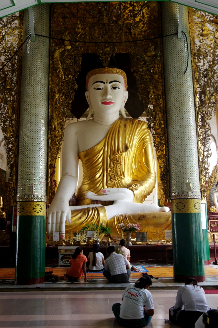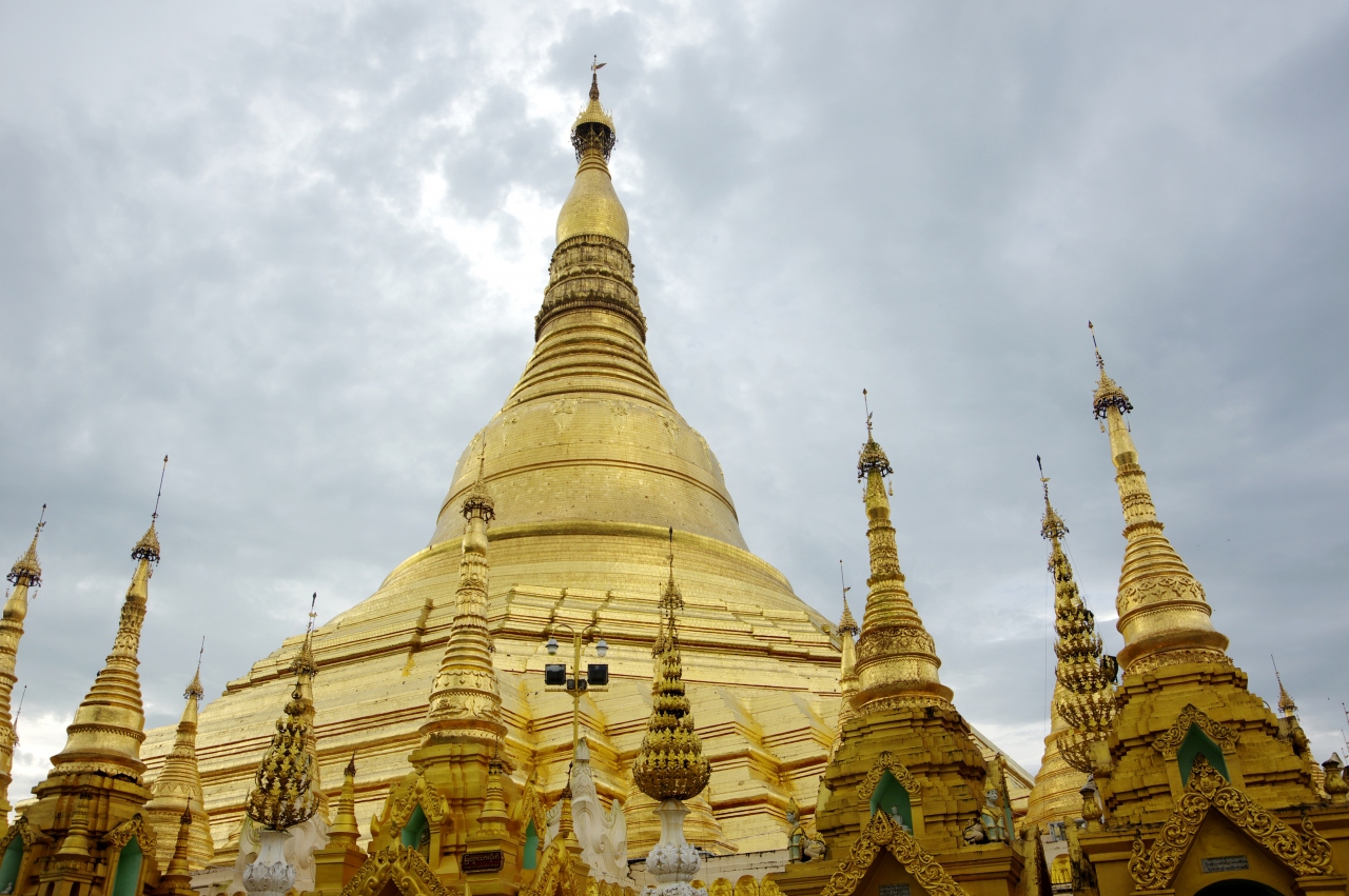 ヤンゴンで最大のパゴダ。地図で見るとわかりますが街中にポツンとあるような感じ。建物までは履き物を脱ぎ、手荷物検査を受けてから入場券を買います。エレベーターに乗り、渡り廊下を進むとパゴダがあります。