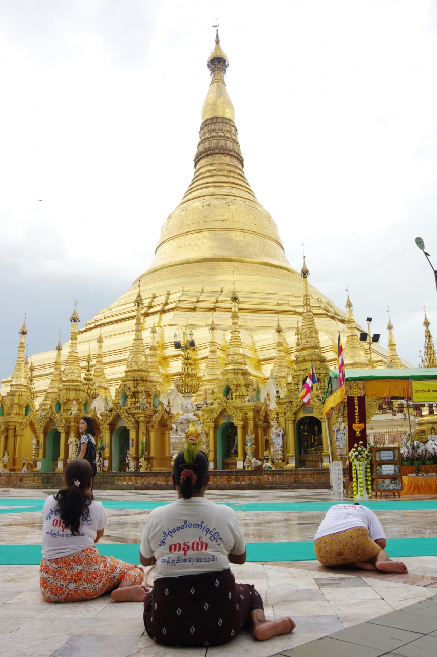 ミャンマー各地からツアーで訪れることも多いそうで、あらゆる場所でお祈りをしています。