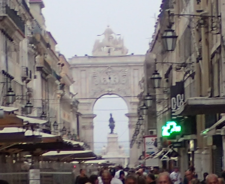 門の前のアウグスタ通りはレストランやカフェが並ぶとてもにぎやかな通りで、ロシオ広場側から入ると通りの先に白い凱旋門が見えてにぎやかな光景でした。