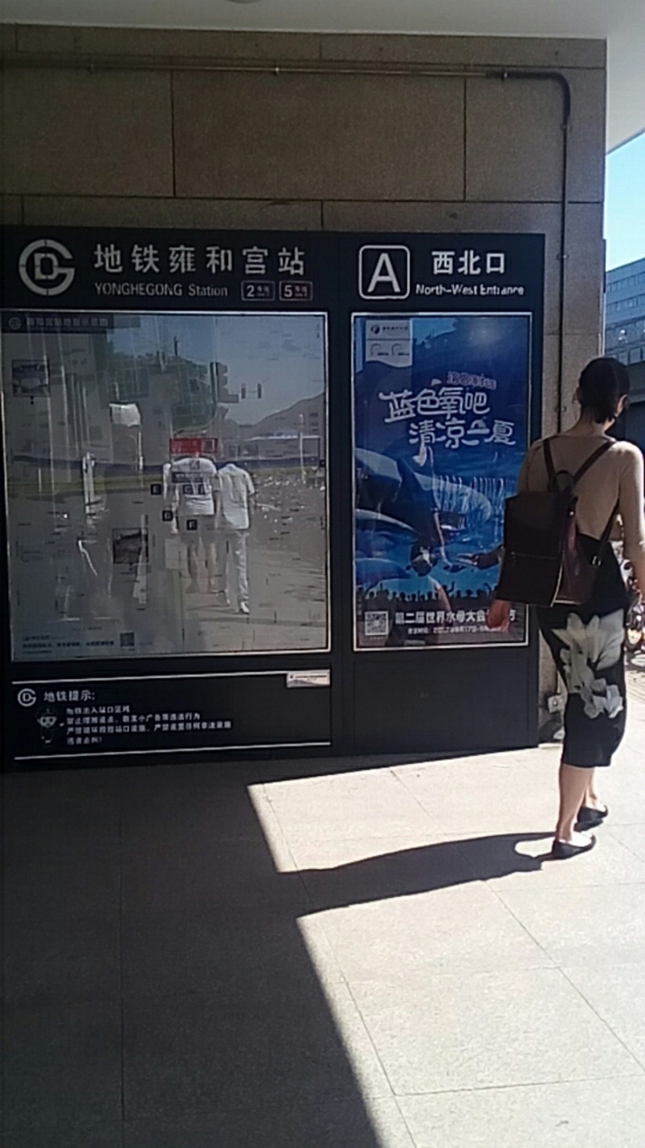 名前の通り雍和宮の最寄駅ですが、自分の場合は地壇公園に行く際に利用しました。またホテルが5号線沿いにあったので環状線で使い勝手のよい2号線への乗換えでもしばしば利用しました。周辺にも古い町並みが残っていたりして見所のあるエリアです。