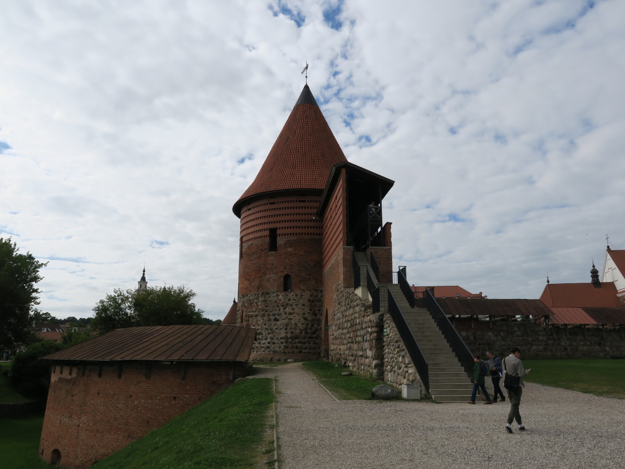 旧市街、市庁舎広場から西へ向かうと緑の芝生の中に、カウナス城の塔が見えてきます。現在は、見張り搭と城壁の一部が残るだけですが、川と緑とレンガ色の塔の風景は、絵になる光景だと思います。時間がある方は、周りを散策するのも気持ちが良いです。