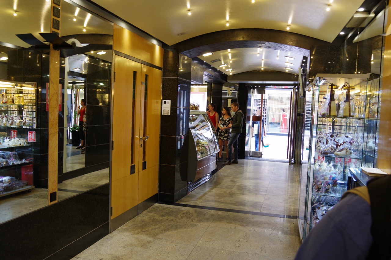 ツアーの自由時間を利用して立ち寄りました。店頭には大きなショーウィンドーに、たくさんのアイスクリームやケーキが並び、感激します。