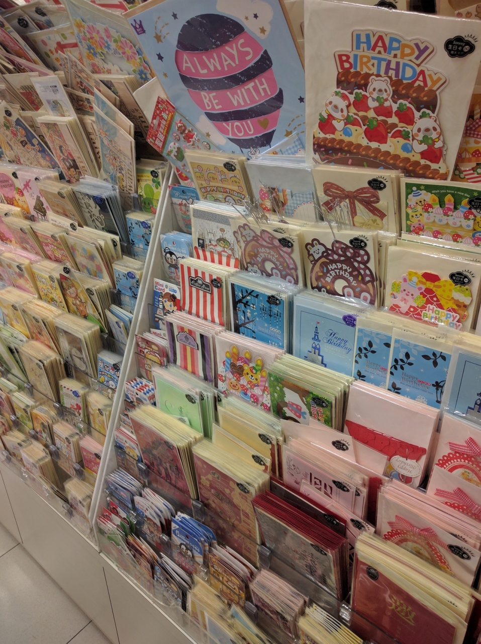 1階に化粧品類、ドリンク、食品などがあり、2階が雑貨、文具など、3階が家庭用品なんかが主にあります。