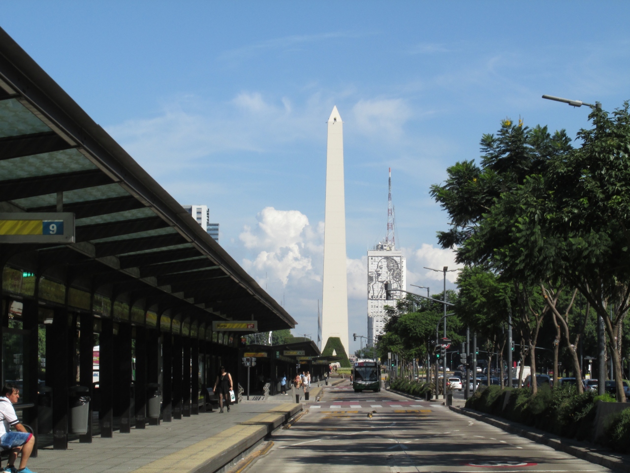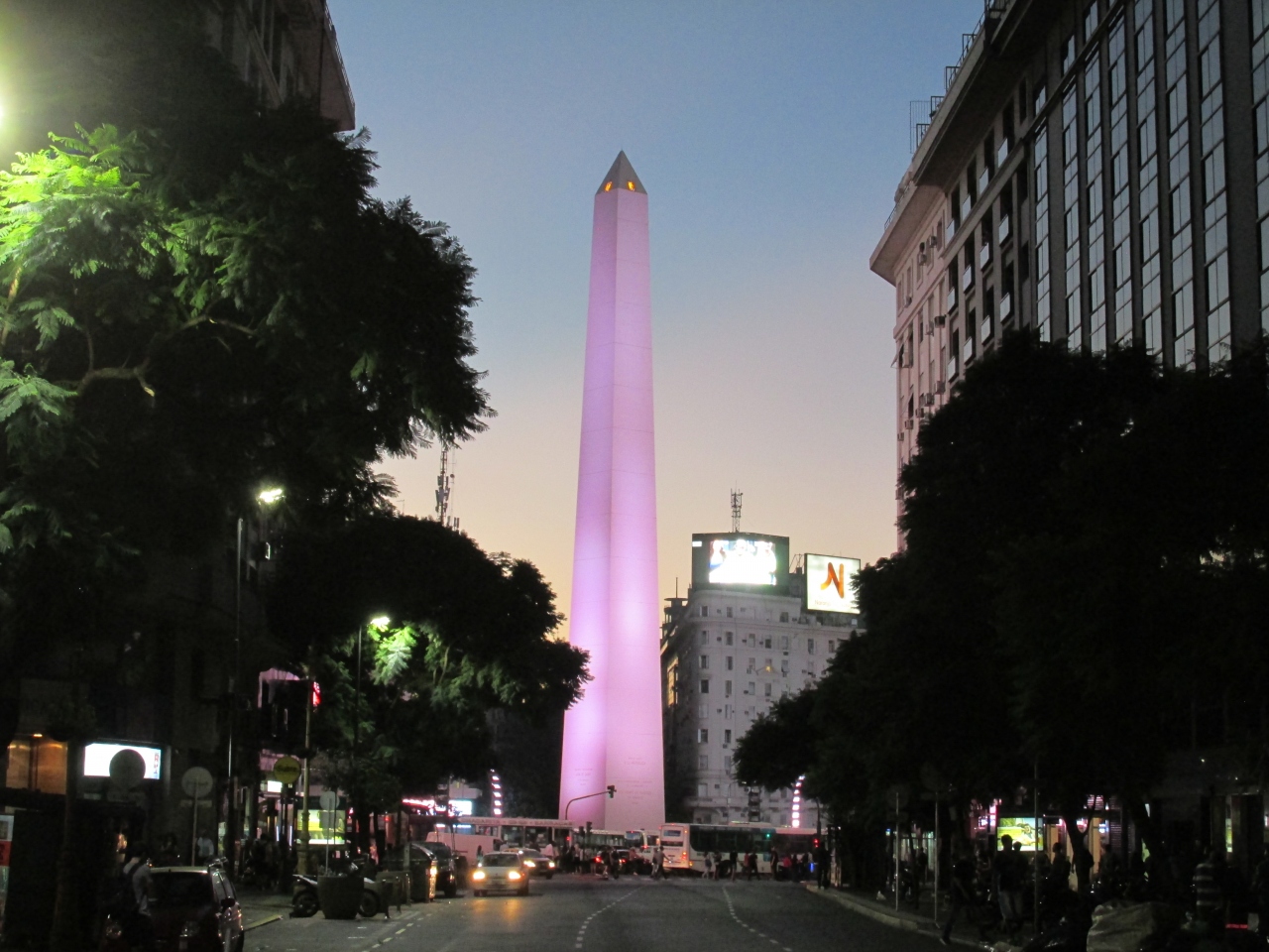 7月9日大通りにたつシンボル。まっすぐで67mある白い建物は迷ったときの道しるべになります。ただ、近くで見上げてるとスリに遭うから気をつけてと言われました。夜にはライトアップされていて、とても綺麗でした。