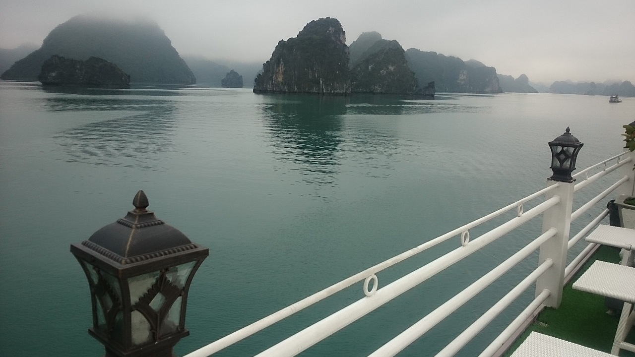 ハノイから日帰りだと、往復時間がかなりかかりクルーズは2~3時間だけで疲れると聞いてたので、クルーズ船で1泊しました。インターネットの宿泊サイトで一人部屋が2万円くらいでした。ハノイからのピックアップサービス、クルーズ船内での食事代、アクティビティ代も含まれます。英語対応のクルーズですが、集合時間やアクティビティ時間等のシンプルな会話が聞き取れれば大丈夫だと思いました。カヤック等のアクティビティも楽しいですし、何もしないでゆっくり墨絵の世界のような絶景をずっと眺めているのもありです。
