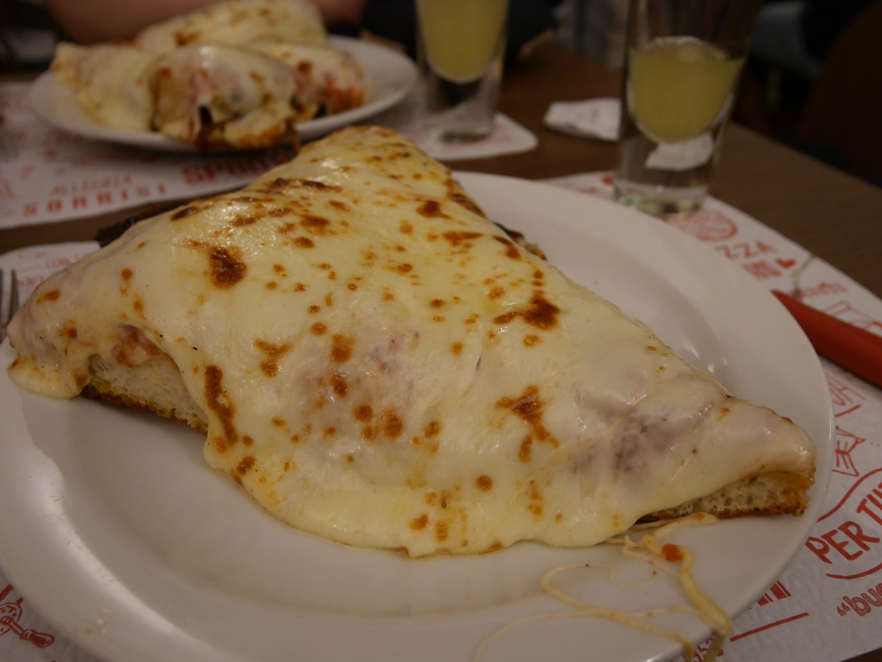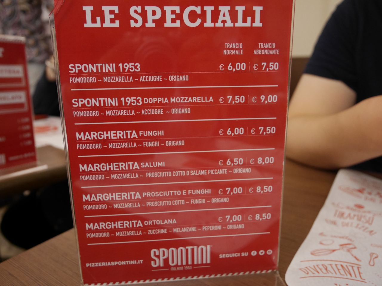 今回頼んだのは、Doppia Mozzarella(モッツアレラ2倍笑)の普通サイズで、7.5ユーロ。お酒類もあります。昼はラザニアもあるそうです!