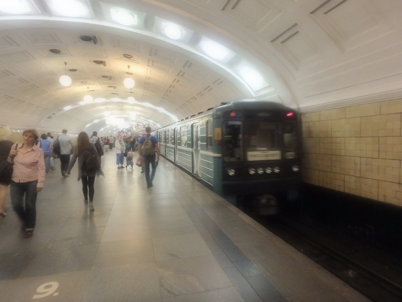駅のホームにシャンデリアや銅像や壁画があるなど装飾は豪華な部分がありますが、駅の入口にエスカレーターがほぼ無いことやホームが地下深くにあるので、乗車に時間がかかることやロシア語のみの標識が多いなど不便な点も多いです。1回乗車券が55ルーブル(約100円)と比較的安いので、助かりました。