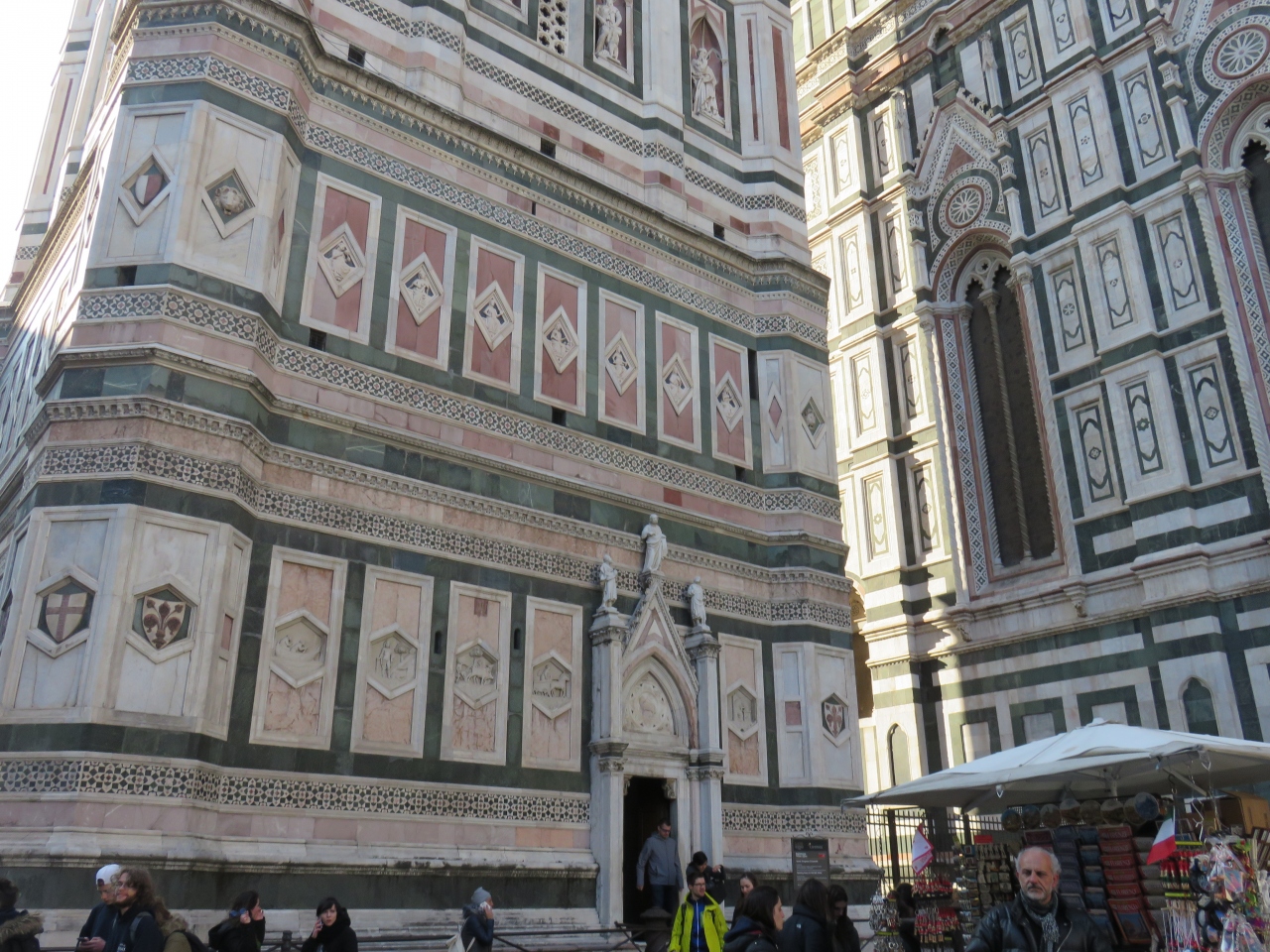 フィレンツェの中心地に位置する広場で、ゴシック様式のファサードが美しいサンタ・マリア・デル・フィオーレ大聖堂とジョットの鐘楼を取り巻いています。ピンク、緑、白の大理石が使用された外観がひと際目立った印象です。