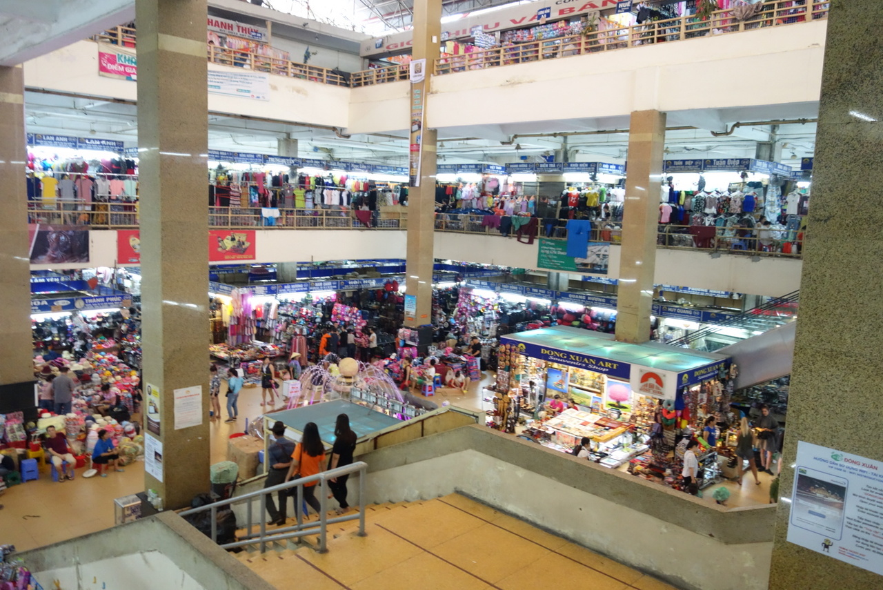 ホアンキエム湖の北、充分歩いていける場所にある、大きな市場。おそらく地上3階建て。