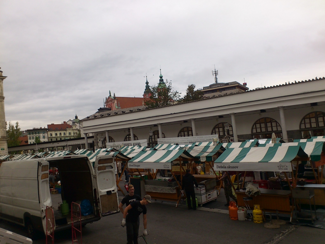 スロベニアの首都、リュブリャナの聖ニコライ大聖堂をのぞいて竜の橋に向かう途中にあった公園で青空市が開かれていました。新鮮な地元の野菜や果物が並んでいて、どれも美味しそうでした。特にぶどうやベリー類が美味しそうでした。訪れたのが土曜日の朝だったので、まだ準備中のお店もありましたが、活気が伝わってきました。