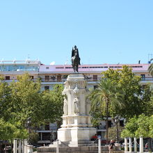 大聖堂の北側に位置しているこの広場はアクセスもいいところにあります。広場を囲むように建物があります。夏にいきましたが日差しを遮る工夫や木々の緑であふれているので気持ちよく過ごすことができました。カフェできゅうけいするのもいいと思います。