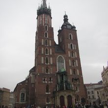 クラクフ旧市街の中央広場に建っている古い教会です。