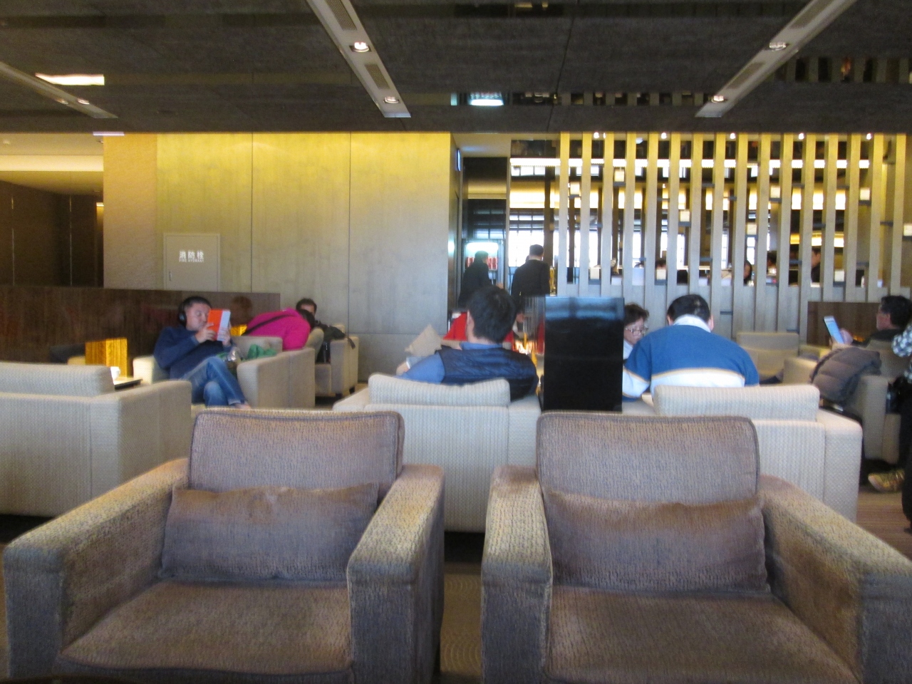 台北松山空港VIPラウンジのソファーは大きく、ゆったりとしていましたが、もともと小さいラウンジで、仕切りがないひとつのエリアなので、相席になる場面がありました。スタッフがラウンジ内を周り、座席に荷物を置いている利用客がいたら、席を空けるように指示していました。